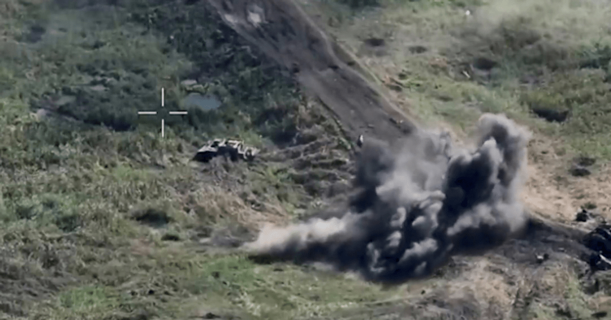 (在乌军集束弹药打击下殉爆的俄军装甲车)