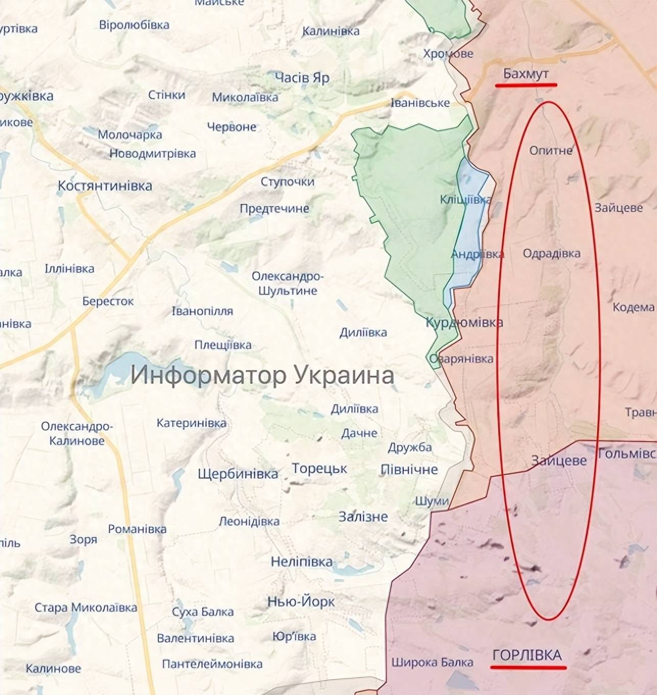 由于泽列诺皮尔利亚和库尔久米夫卡之间有一条连接巴赫穆特的铁路线,这里不仅是俄军在顿涅茨克地区的主要补给线,而且也是巴赫穆特城郊驻军至关重要的后勤转运枢纽之一。因此,该地区一直是俄军南线防御体系中的“重中之重”。如果乌军在泽列诺皮尔利亚继续向南突击,进一步控制了库尔久米夫卡村,那么乌军将获得从南向北发动大规模进攻的重要支撑点,可以毫无顾忌地向俄军纵深推进,巴赫穆特南部侧翼的所有重要据点都将被乌军所控制,届时乌军可以不费“吹灰之力”从巴赫穆特南翼集结兵力,向巴赫穆特城南进军。