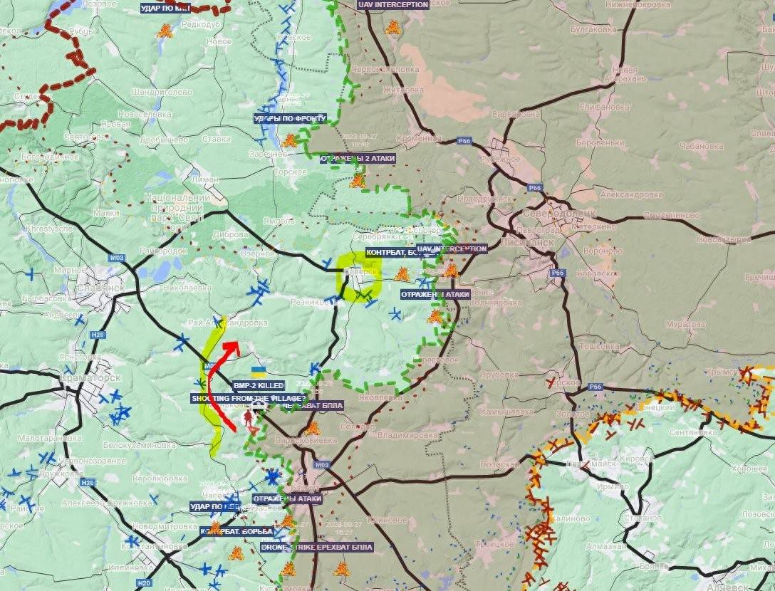 与此同时,面对俄军层层设防的消耗战策略,乌军并未坐以待毙。反而选择主动出击,寻找俄军防线弱点实施重点突击。27日以来,来自“柳特”突击旅的乌军特种部队,已经突破了安德里夫卡以南铁路沿线的俄军阵地,目前,进攻锋线直指库尔久米夫卡以北的泽列诺皮尔利亚村(Зеленопілля),大有一口气切断库尔久米夫卡与巴赫穆特之间补给通道的态势。