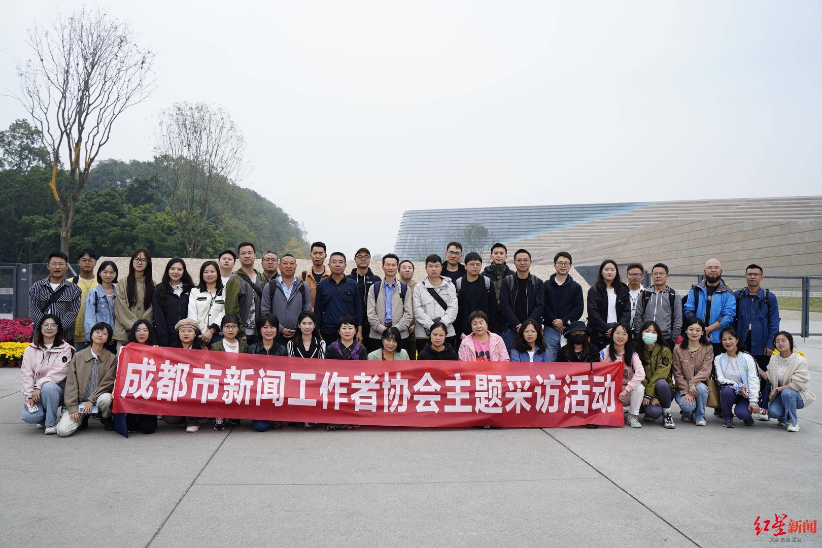 1986年,三星堆发掘两个“祭祀坑”,出土了青铜大立人、纵目面具等2000多件珍贵文物,古蜀文明的璀璨与神秘震惊世界,被称为20世纪人类最伟大的考古发现之一。 2020年,三星堆考古发掘重启,新出土青铜器、金器、玉石器等各类文物1.7万多件,极大丰富了三星堆文化的内涵。10月26日,成都市新闻工作者协会采访团40余名成员来到三星堆博物馆展开主题采访。