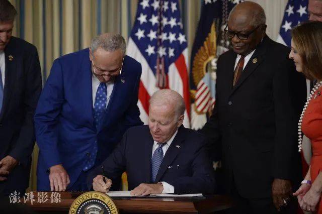 2022年8月16日,美国总统拜登签署了总价值为7500亿美元的《2022年通胀削减法案》。图自澎湃影像