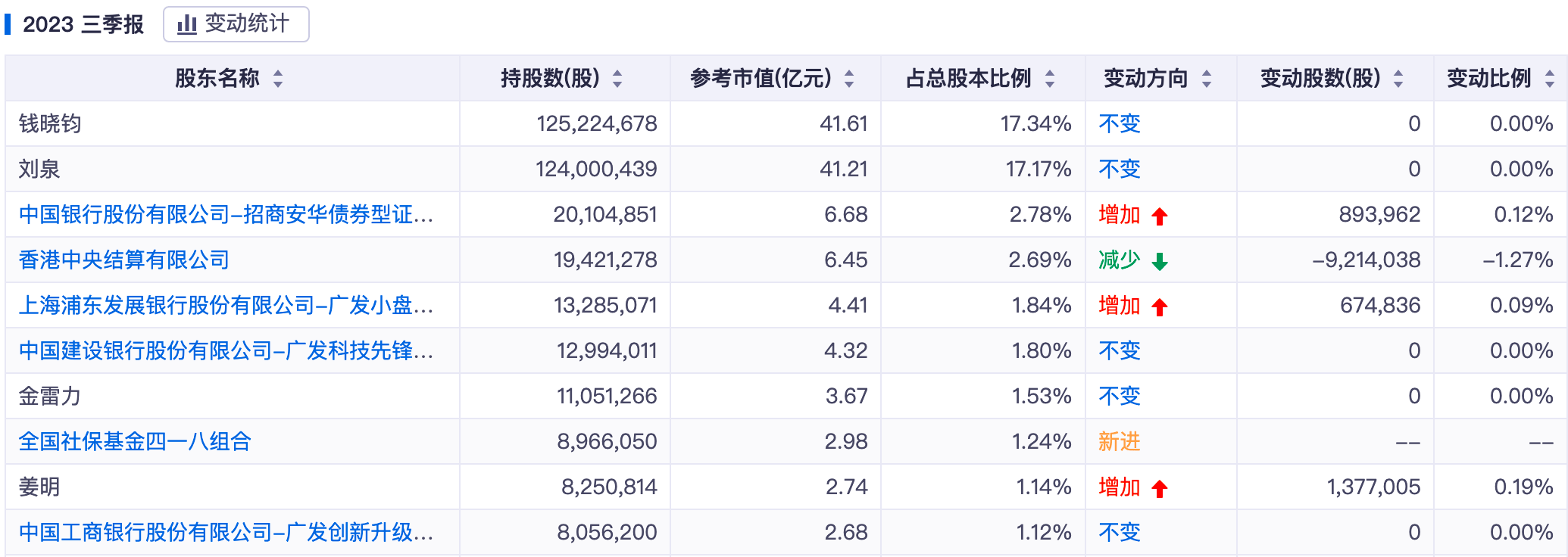 2023年第三季度国联股份前十大股东