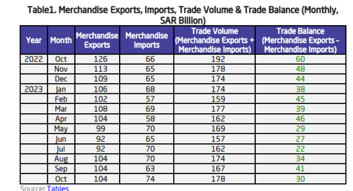 出口方面,沙特10月出口额同比下降了17.4%,较上月小幅上涨了1500万里亚尔,基本持平。