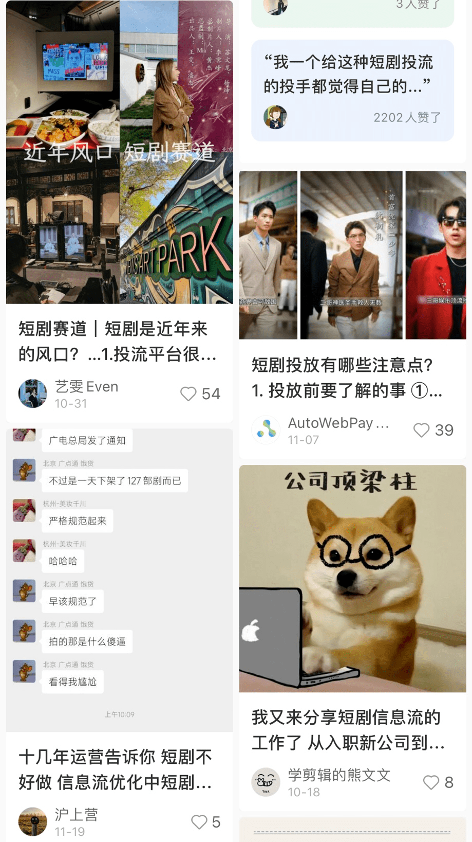 在社交平台搜索“短剧投流”,你会看到各种针对新人的教程。(图/社交平台截图)