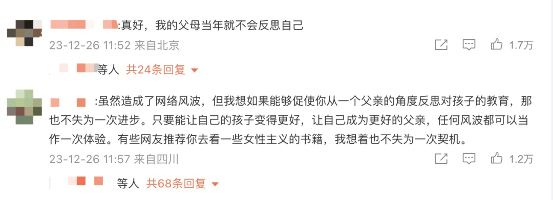 大概他原意只是想分享一下和孩子的相处,但这条微博下,网友们炸了锅。