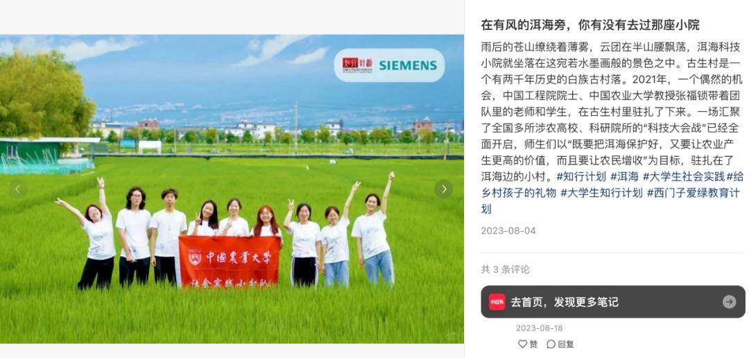 云南古生村科技小院是首个迈入3.0+模式的科技小院。他们在大理洱海边,依托科技小院搭建研学基地,、在保护洱海的同时促进了农民增收和农业绿色转型,探索了一条一二三产业融合的新型模式,将在美国等国家运营成熟的休闲观光式农场模式,以更贴合我国国情的方式落地。