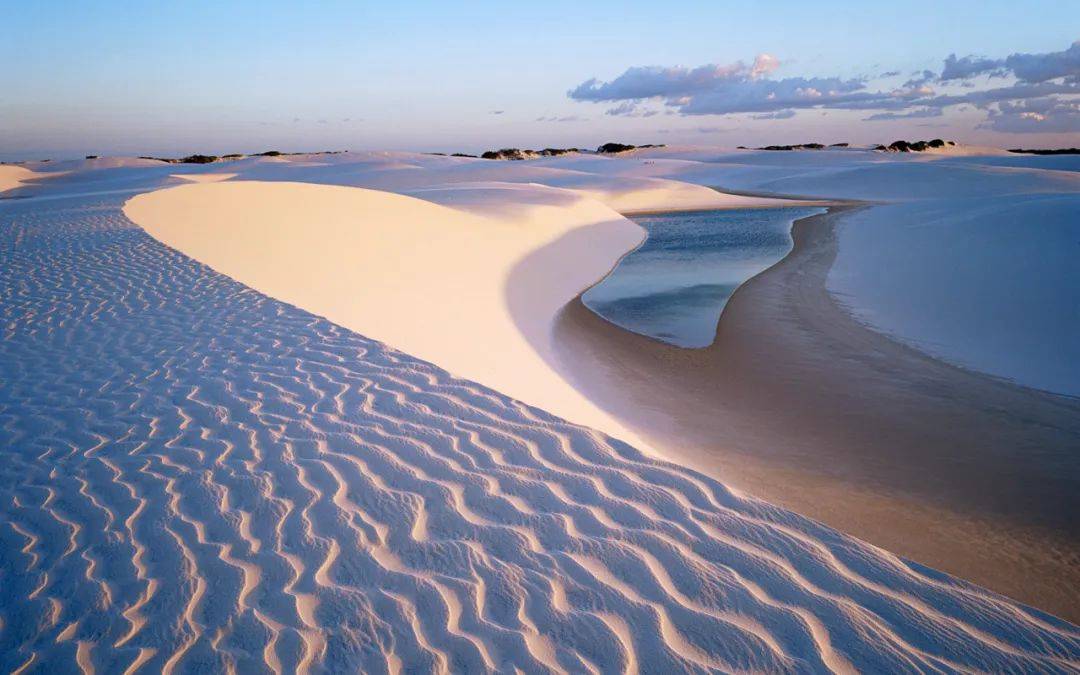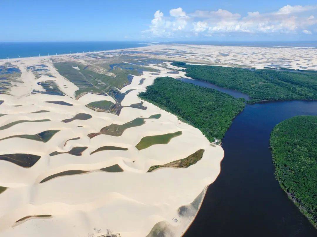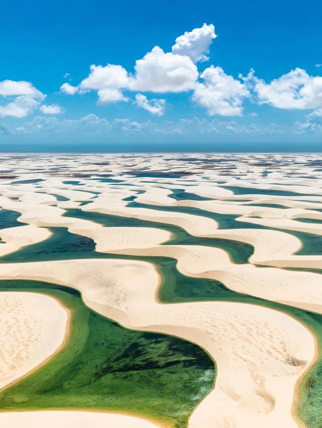 这座沙漠叫做千湖沙漠,位于南美洲巴西的东北部。和绝大多数气候干燥、寸草不生,缺少水源的沙漠不同,这里紧邻大西洋,每年的降水量多达1600毫米,将近是北京降水量的3倍,更是撒哈拉沙漠的近300倍。