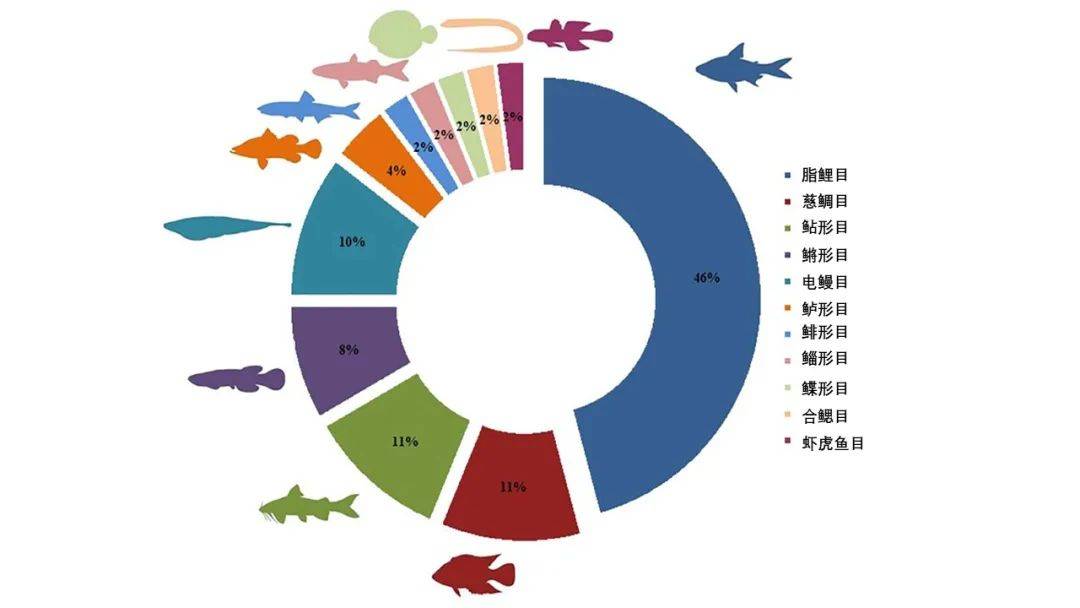 千湖沙漠中不同鱼类所占的比例。(图片来源:scielo.br)