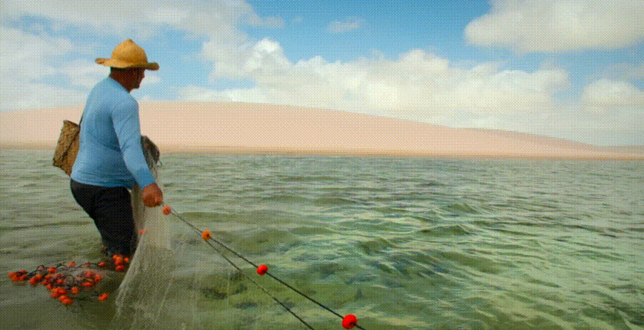 更夸张的是,沙漠中居然还出现了渔夫。他们跟着鱼的踪迹,并在沙漠中捕鱼!